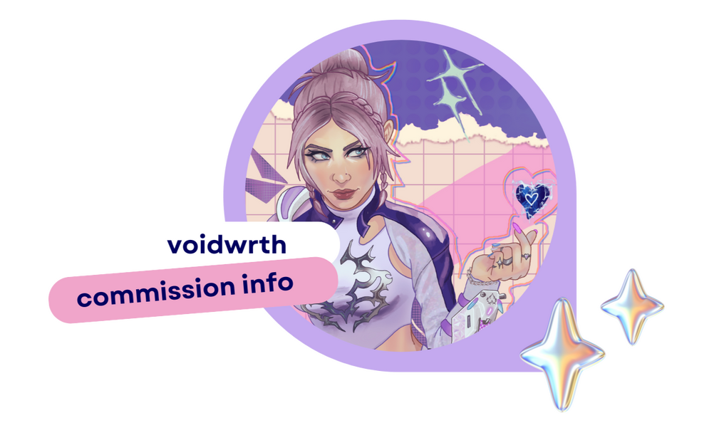 Commissions are for personal use only. Artwork may be used as profile pictures, banners, stream starting/ending screens but may not be used for profit. (e.g. merchandise, stickers) without prior permission.When reposting please credit my twitter @voidwrth and leave my signature visible.Do not feed my art to AI.I retain all rights to my art and may add works to my portfolio or upload to my socials (with watermark). For fanart commissions, I reserve the right to post/use/resell the work as merch or prints. If you prefer your commission to remain private, please let me know.Once the finalized artwork is approved, I will email you a full res .png file of the work. No physical product will be delivered.â°TURNAROUND TIMEI do not currently operate a waitlist and only accept one commission at a time. Once your slot is confirmed, you have my undivided attention!Turnaround time may vary depending on complexity but once I have started work I aim to finish a commission within 1-2 months. I value quality and detail and put many hours into my drawings, so please be patient, but you are welcome to ask for updates if there hasn't been one in a while! I normally provide updates at the rough sketch, flat colors, and final check phases.If you have a deadline in mind please let me know upfront!đ”PAYMENTPayment is in USD, via Paypal invoice50% payment upfront and the remaining 50% upon approval of the rough sketch.I will not start working on your commission until payment is made. If no payment is made within a week of receiving the invoice (without reasonable communication) you may lose your slot and it will be offered to someone else.âCHANGES & CANCELLATIONSIf I can't provide/finish the artwork for any reason on my end you will be given a full refund.If you cancel before I start work on your commision you will be given a full refund. If you request a refund at any time after payment but before completion, a partial refund may be given, depending on how much I have completed up to that point.No refunds after a drawing has been completed but if there's anything you are unsatisfied with please let me know - at the end of the day I want you to be happy! Small changes may be requested and provided free of charge but large changes may incur additional charges.By commissioning me, you confirm you have properly read, understand, and AGREE to the terms listed above. â€